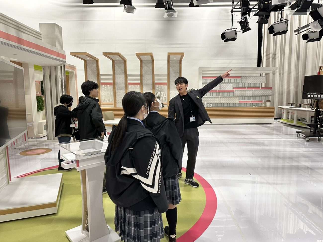 午後からの現地見学では北海道放送さまのご協力を得まして、テレビ局の仕事内容の説明・スタジオや本社見学を行われておりました。